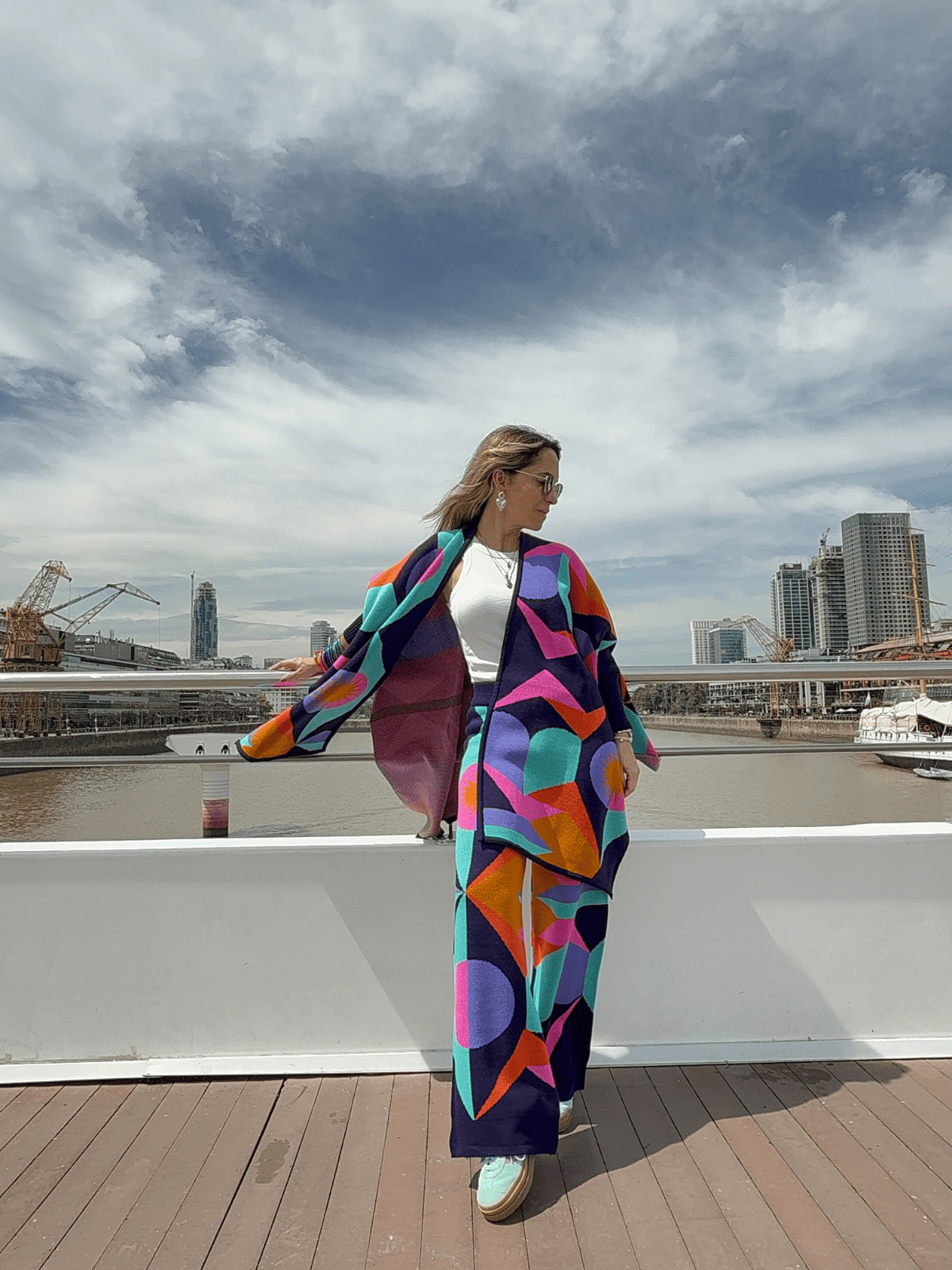 Disfruta del cálido estilo colombiano con esta capa tejida en base azul vibrante, adornada con colores que reflejan la riqueza cultural de Colombia. Perfecta para añadir un toque auténtico y colorido a tu vestuario, combinando comodidad y tradición en una prenda versátil para cualquier ocasión.