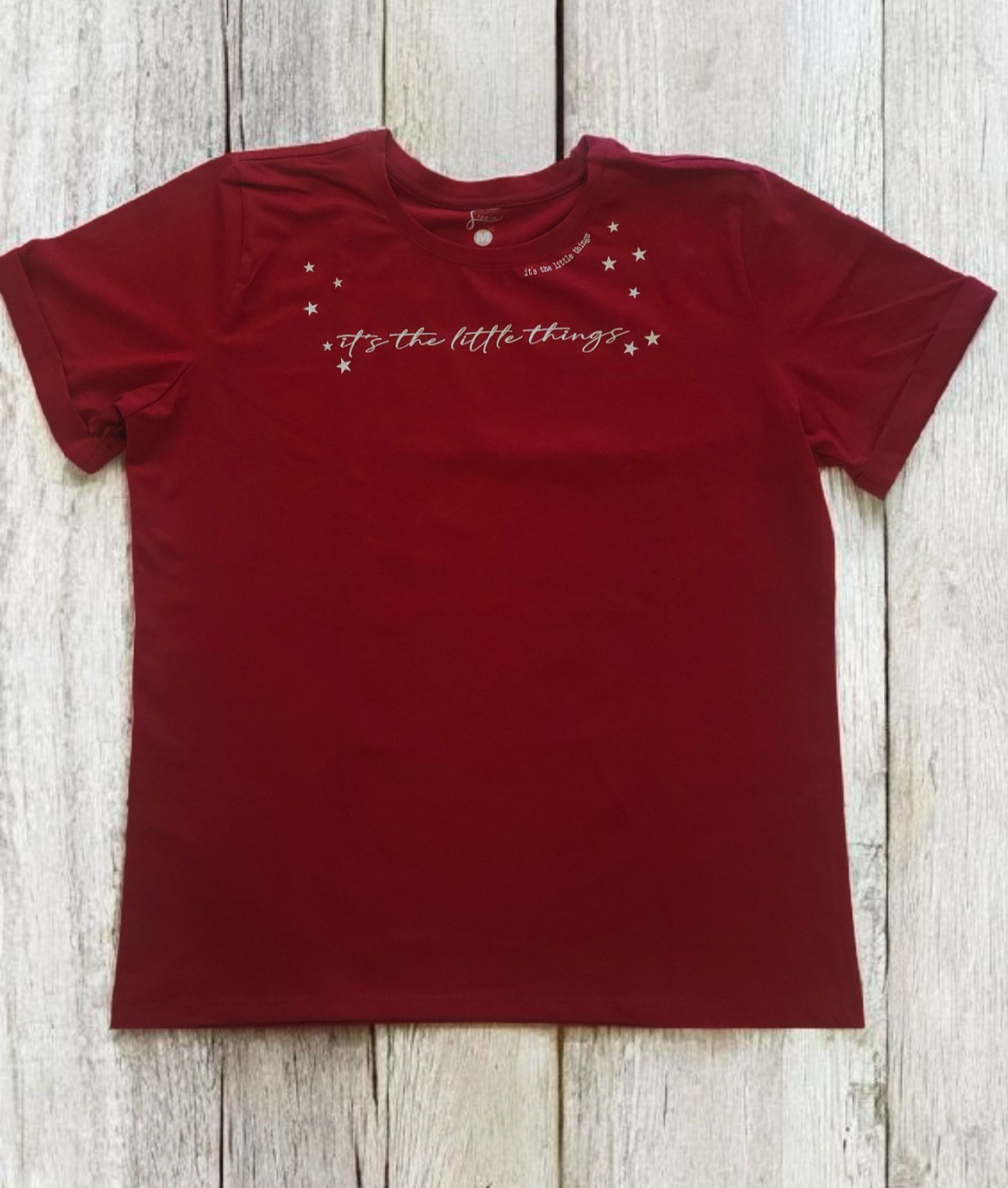 Esta franela de tela fría en color vinotinto ofrece comodidad y frescura para el día a día. Destaca por su frase inspiradora "it's the little things", que recuerda valorar los pequeños momentos. Ideal para quienes buscan una prenda sencilla y con mensaje, perfecta para cualquier ocasión casual.