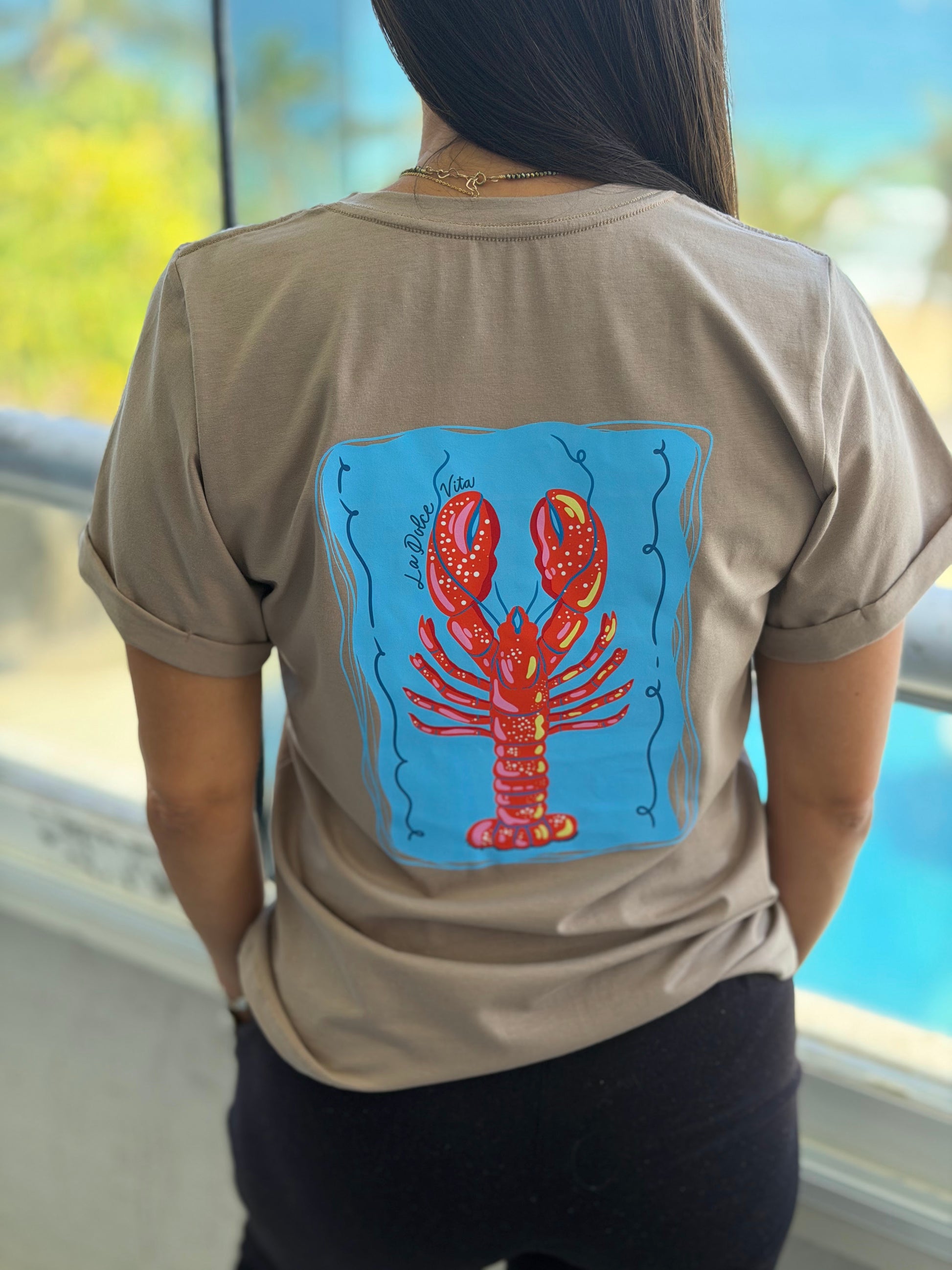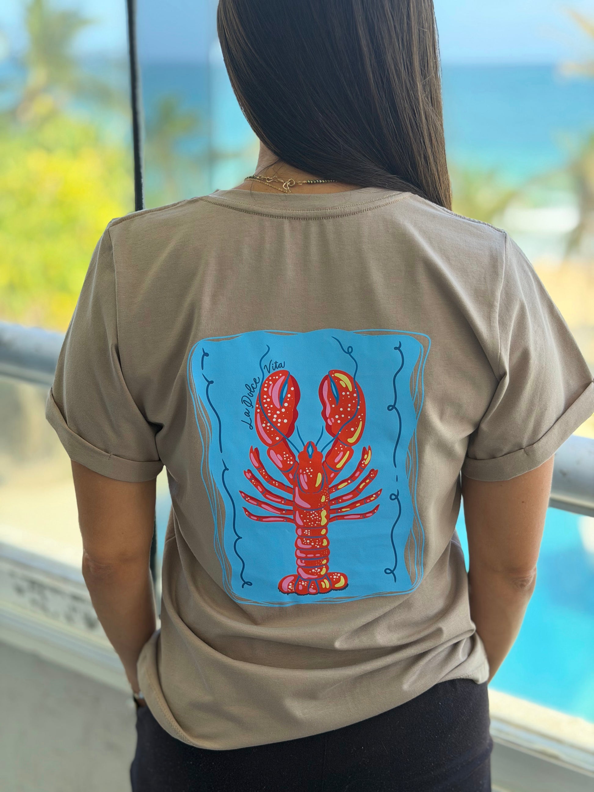 Franela de algodón en tono beige con un vibrante estampado de langosta que añade personalidad a tu guardarropa. Confeccionada en material suave y transpirable, perfecta para el clima cálido. El diseño colorido de la langosta destaca en esta prenda versátil que combina comodidad y estilo. Ideal para usar casual en cualquier ocasión.