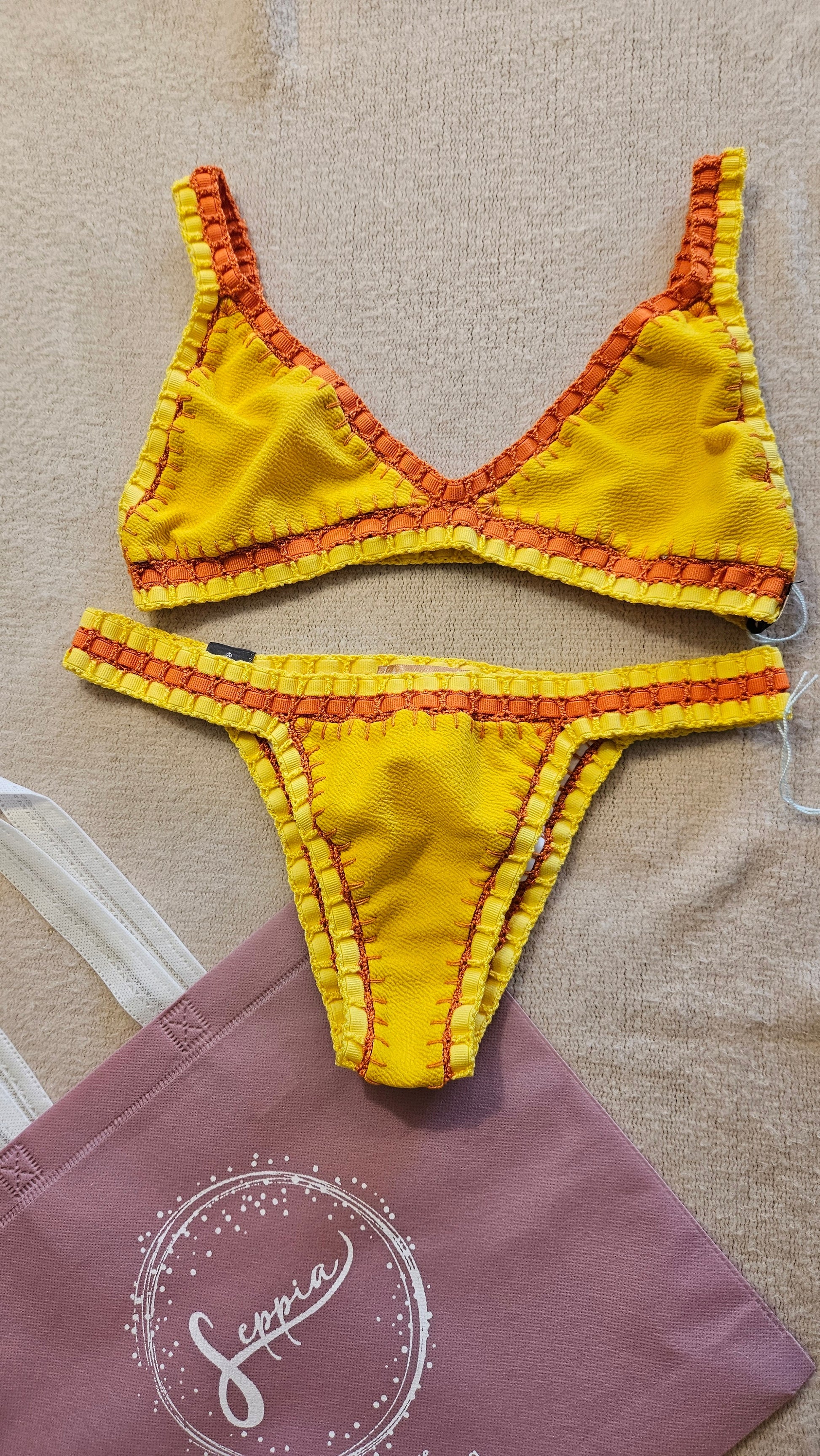 Este traje de baño Sol está elaborado a mano con hilos y telas colombianas de alta calidad, ofreciendo un acabado único y artesanal. Su color amarillo intenso aporta un toque vibrante y alegre, ideal para destacar en la playa o la piscina. Además, su tejido cuidadoso garantiza comodidad y un ajuste perfecto para que disfrutes cada momento al sol con estilo y confianza.